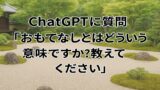 ChatGPTの活用法をさがすため、ChatGPTを質問攻めにする企画の241回目です。