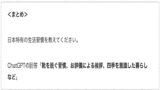 ChatGPTの回答「何を求めているか、安心感、得られる結果を強調 など」